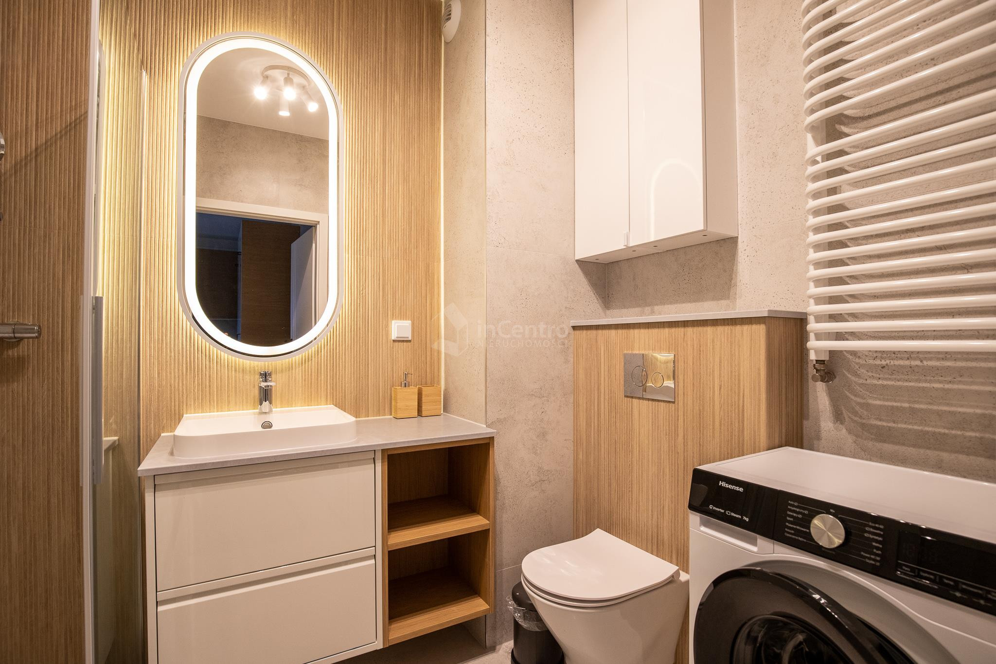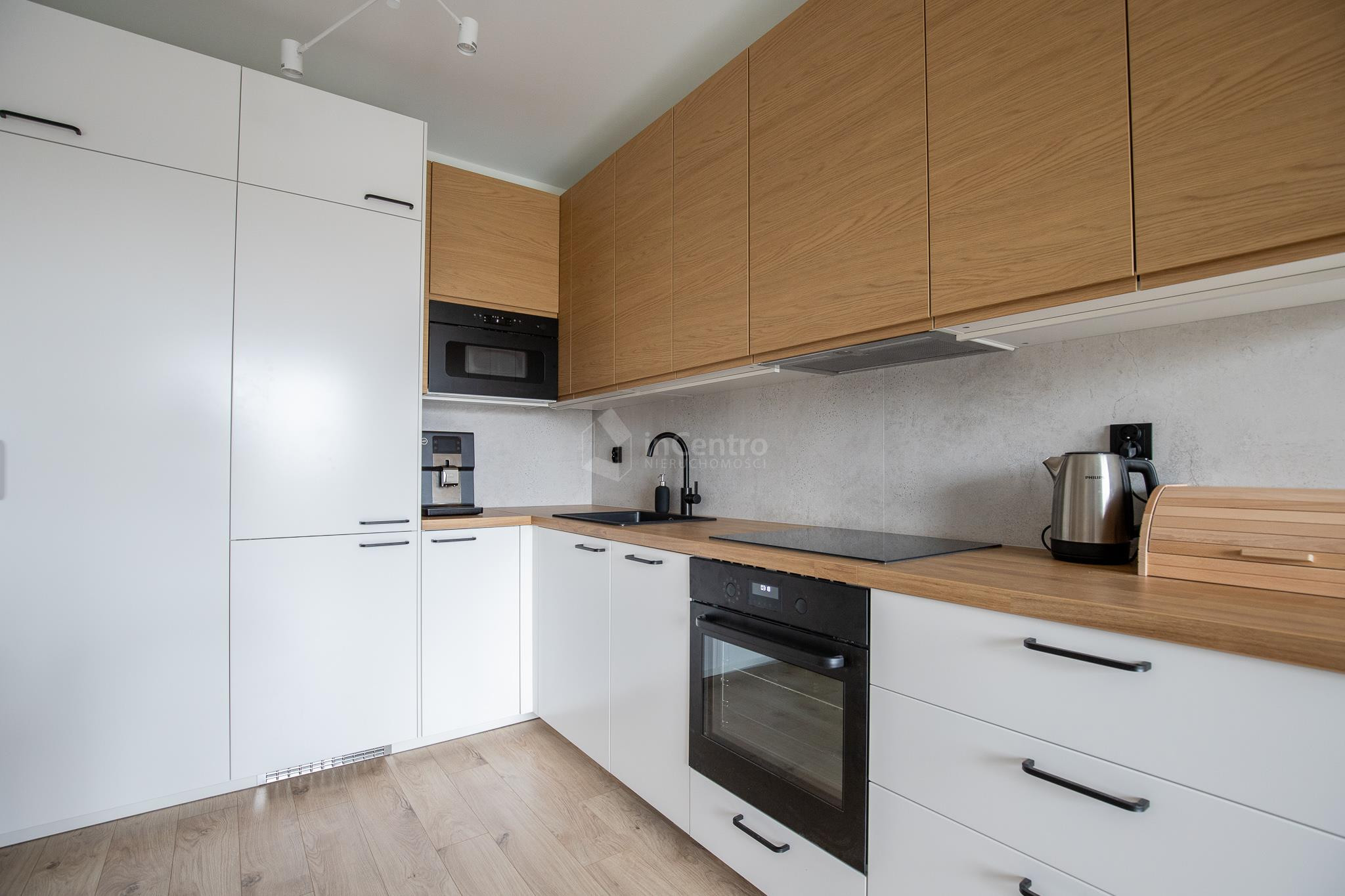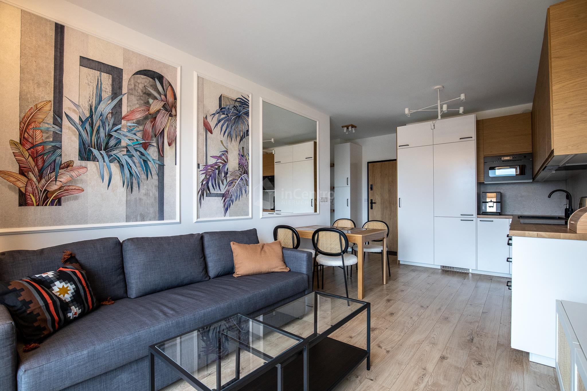 Mieszkanie nowo wykończone w podwyższonym standardzie. Dobrej jakości materiały, meble zaprojektowane na wymiar. Stylowe wnętrze zaprojektowane przez doświadczonego architekta. Powierzchnia użytkowa mieszkania 39 m2. Składa się przestronnego salonu z aneksem kuchennym z wyjściem na balkon, sypialni, łazienki oraz przedpokoju.