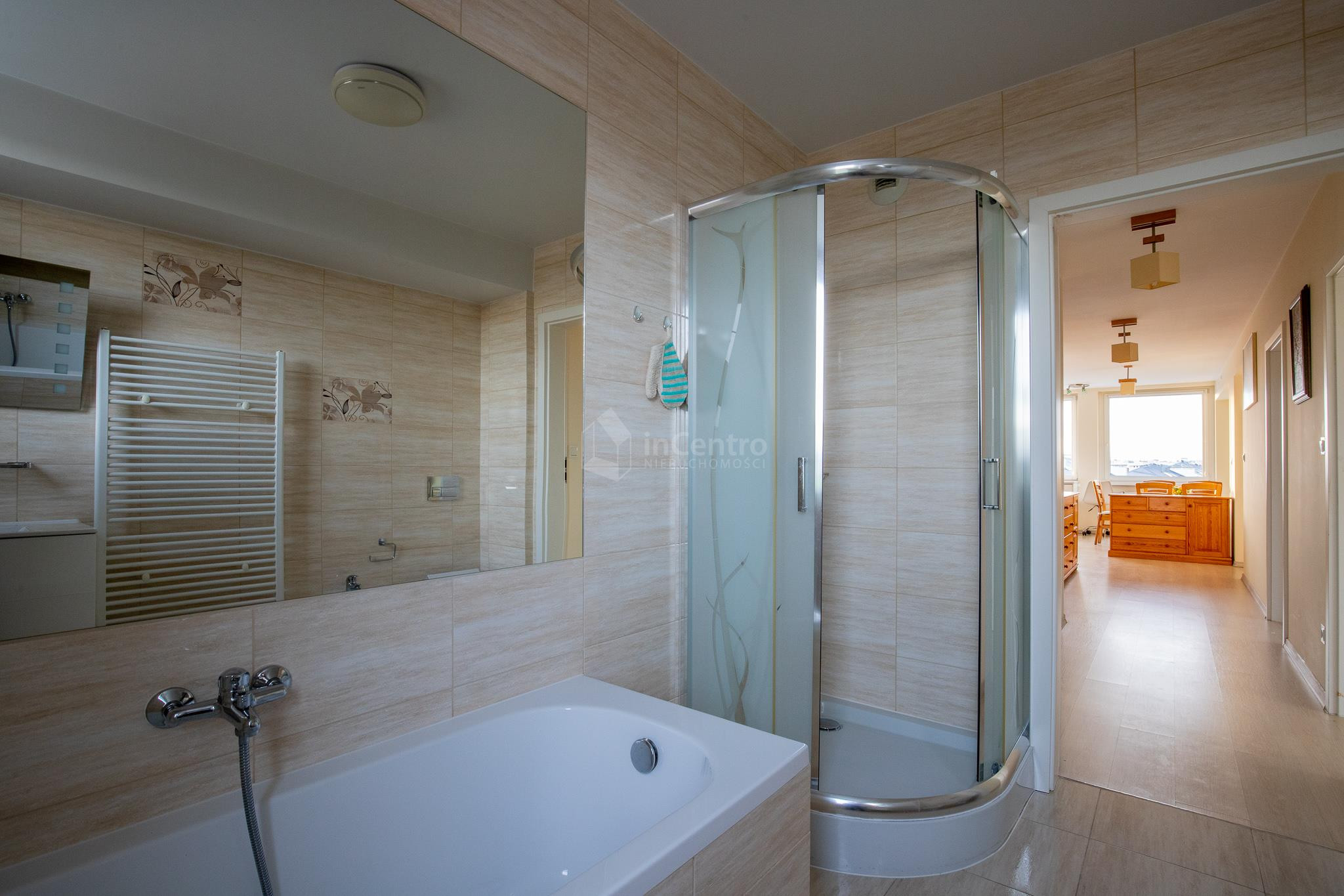 Przestronny lokal mieszkalny o powierzchni 116m2. + taras ok. 50m2. położony na 5 piętrze w budynku wielorodzinnym wyposażonym w windę, oddanym do użytkowania w 2019 roku. W skład mieszkanie wchodzi : przestronny salon z aneksem kuchennym z częścią jadalnianą, pomieszczenie gospodarcze, WC, łazienka z kabiną prysznicową i wanną, dwie sypialnie, oraz przedpokój. Dodatkowym atutem jest piwnica/komórka lokatorska. Wnętrze umeblowane, oraz wyposażone w sprzęt AGD/RTV taki jak : pralka, zmywarka w zabudowie, czteropalnikowa płyta indukcyjna, piekarnik w zabudowie, wolnostojąca lodówka z zamrażarką, oraz odbiornik TV. Ogrzewanie miejskie, ciepła woda miejska. Najem możliwy od 1 marca.