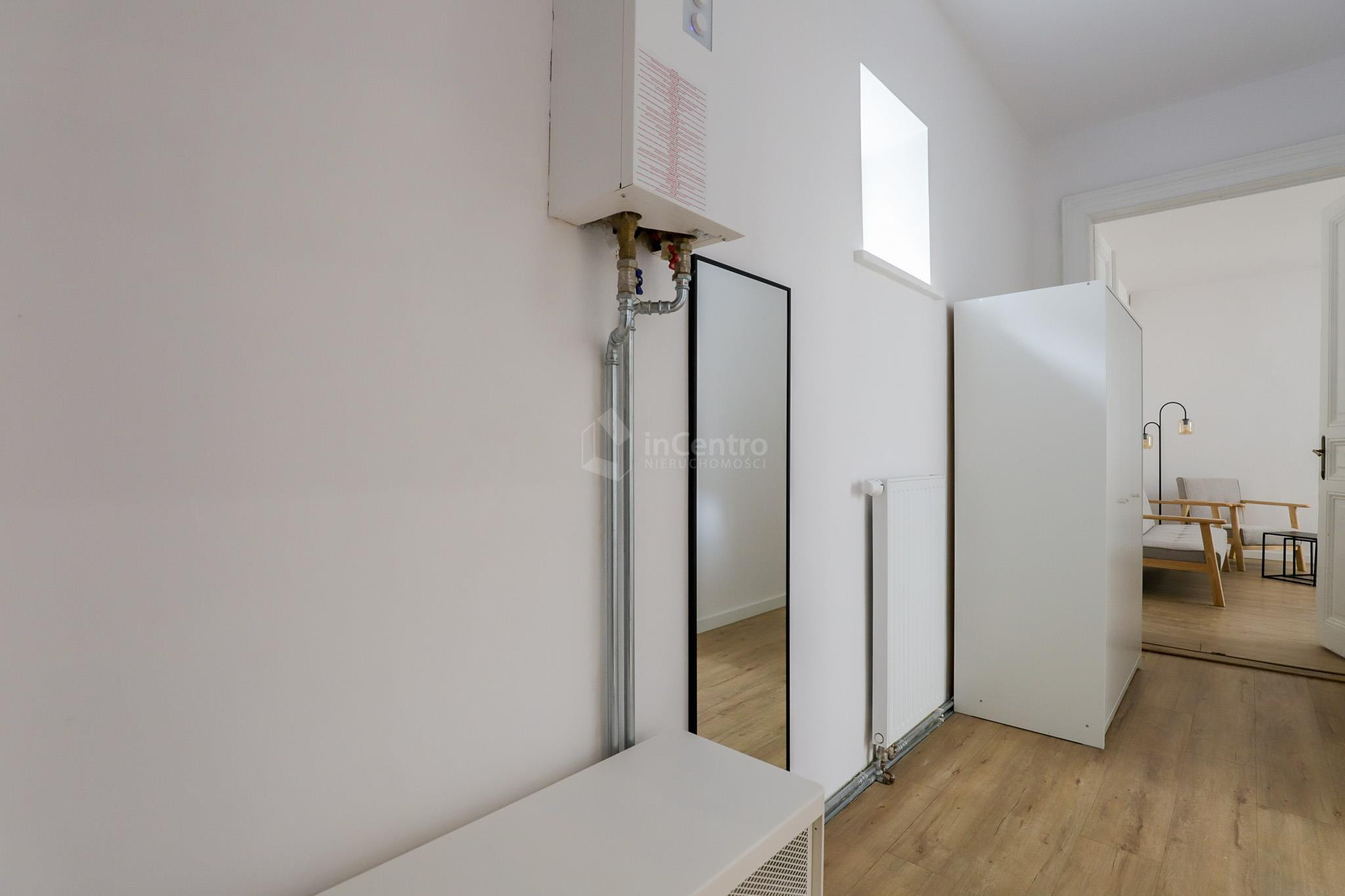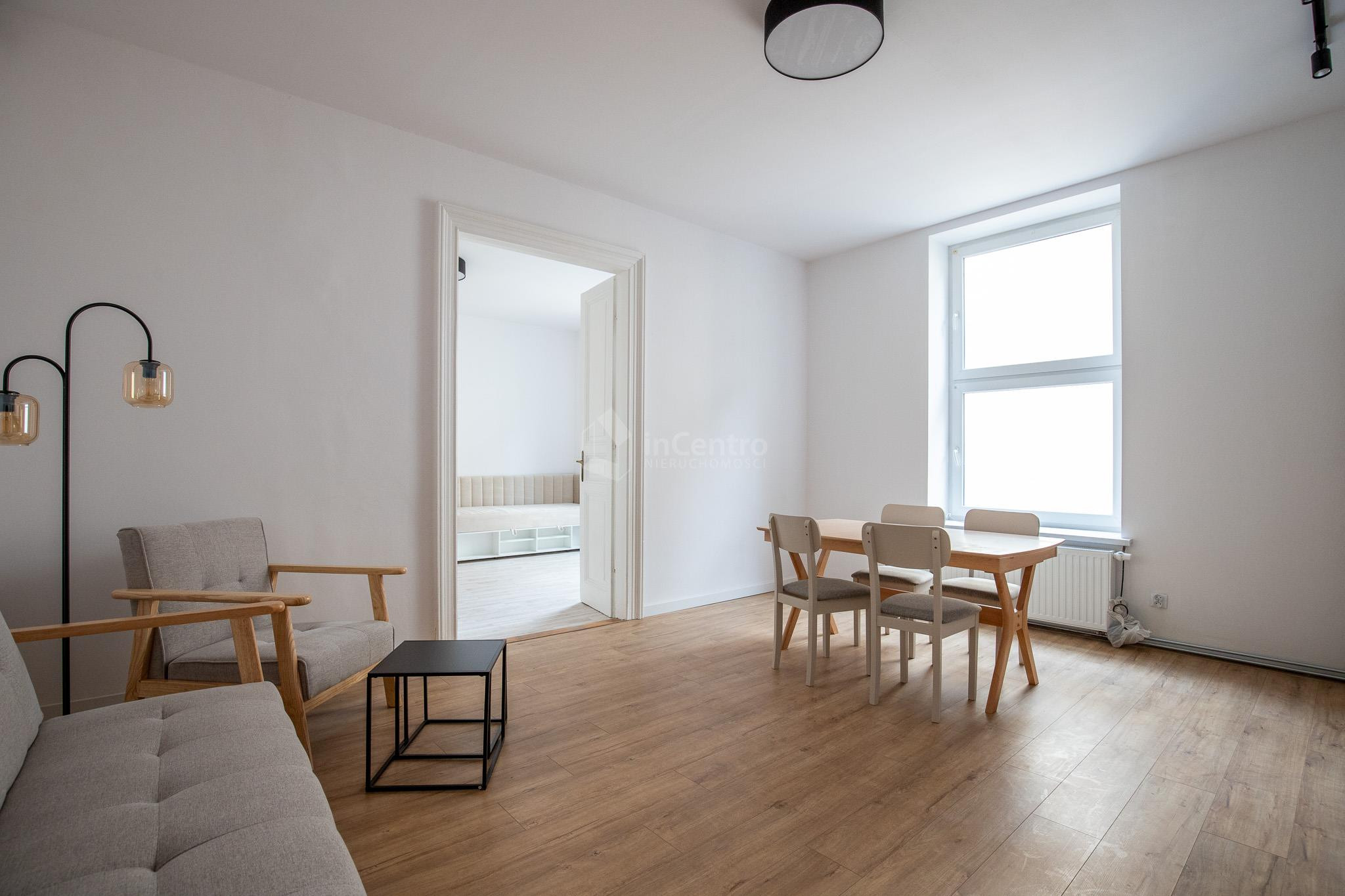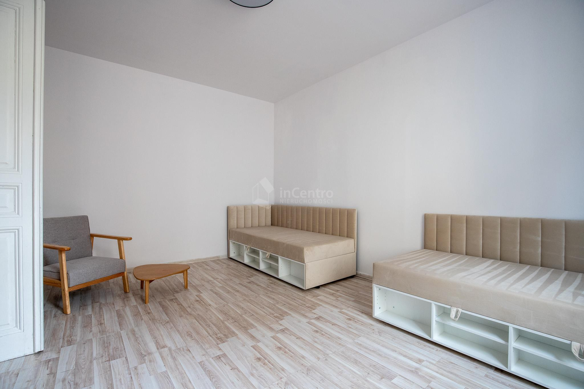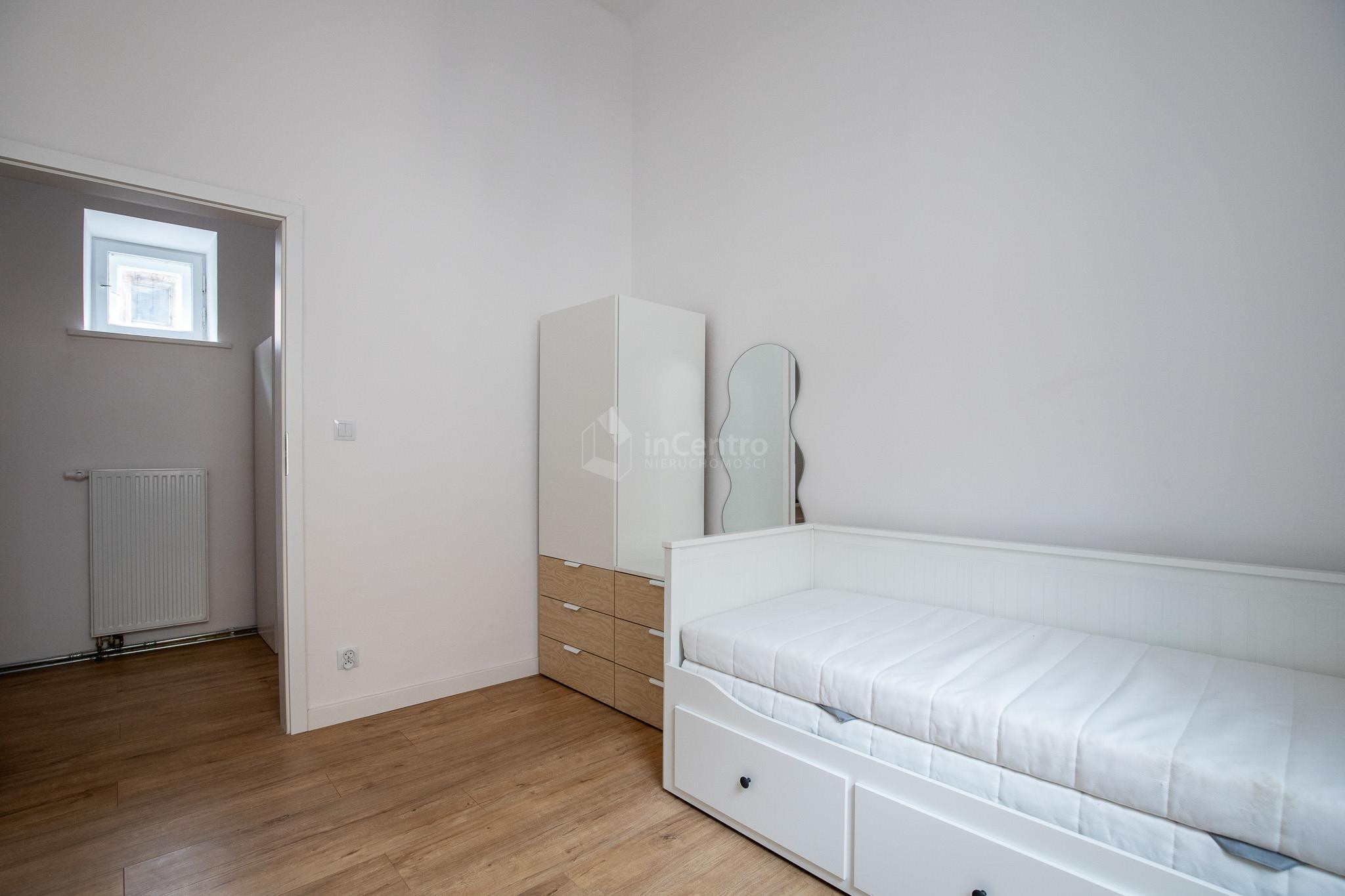 Lokal mieszkalny świeżo po remoncie usadowiony na 2 piętrze w oficynie kamienicy o powierzchni 64m2., w skład wnętrza wchodzą dwie sypialnie, salon z aneksem kuchennym (przechodni), łazienka, oraz przedpokój. Dodatkowym atutem jest duża komórka lokatorska usadowiona na poddaszu budynku. Mieszkanie umeblowane, oraz wyposażone w sprzęt AGD taki jak : pralka, kolumnowa lodówka z zamrażarką, piekarnik, czteropalnikowa płyta indukcyjna, oraz okap. Ogrzewanie elektryczne, ciepła woda podgrzewana za pośrednictwem bojlera. Opcjonalnie możliwość wynajęcia blaszanego garażu przy budynku. Dostępne od zaraz.